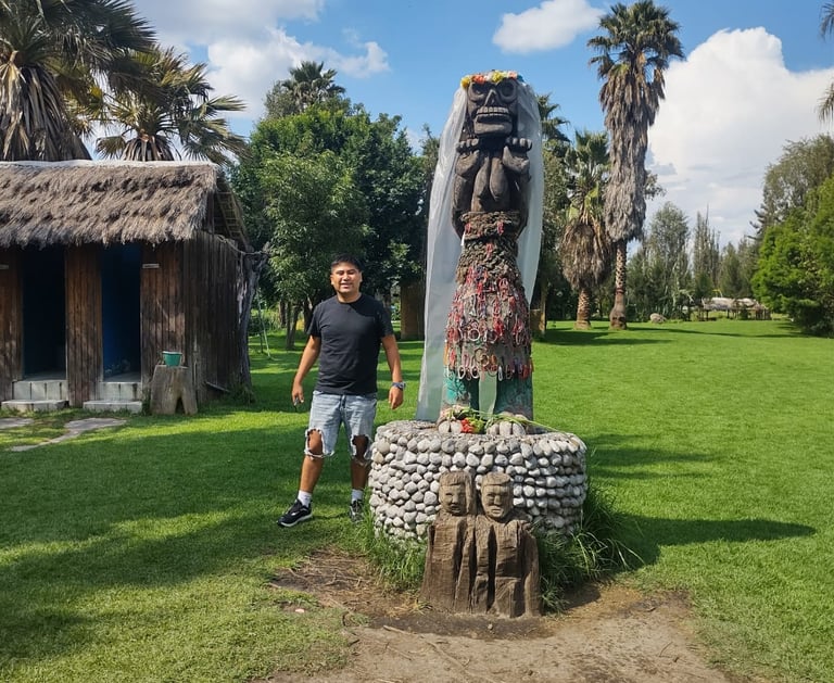 Tótem ceremonial de Xochimilco: Estructura emblemática que representa la conexión entre el mundo terrenal y espiritual